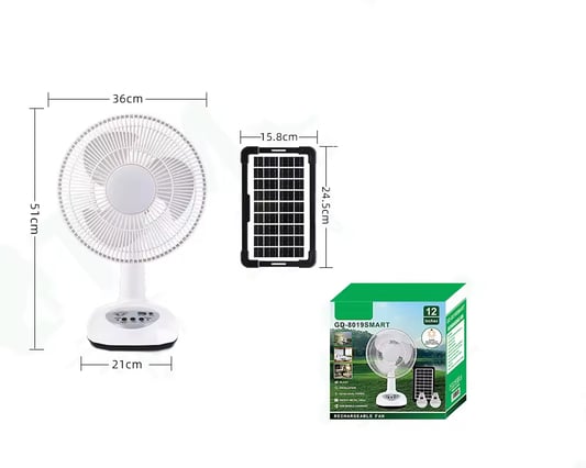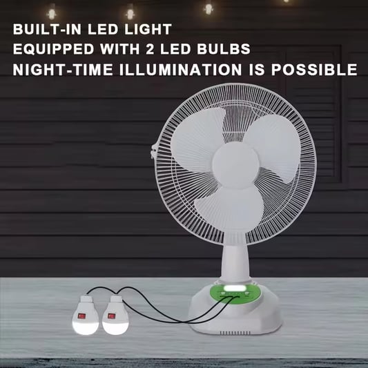 12-Inch Solar Rechargeable LED Desk Fan With USB
