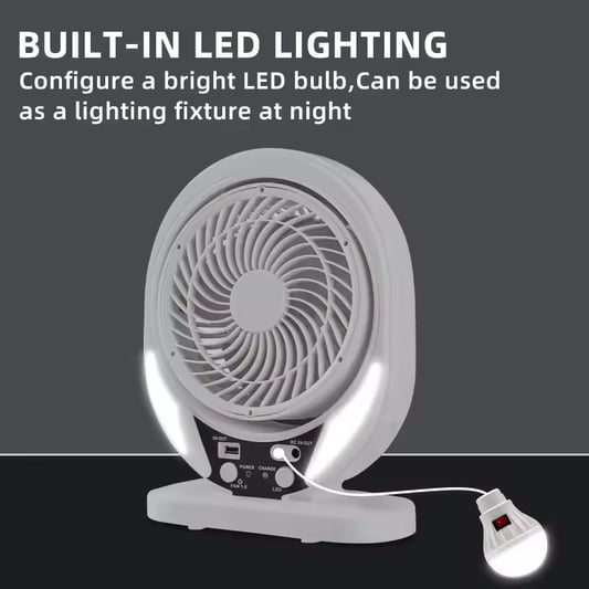 Seven Inch Rechargeable Desk Fan with Solar Charging