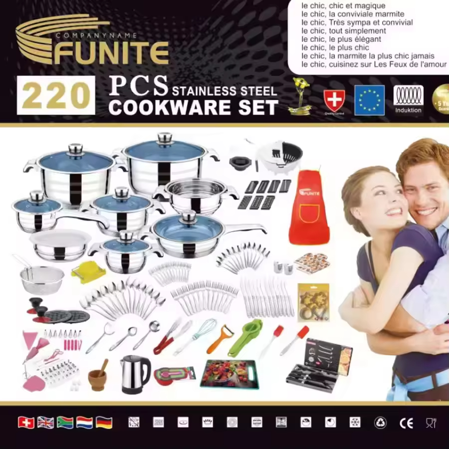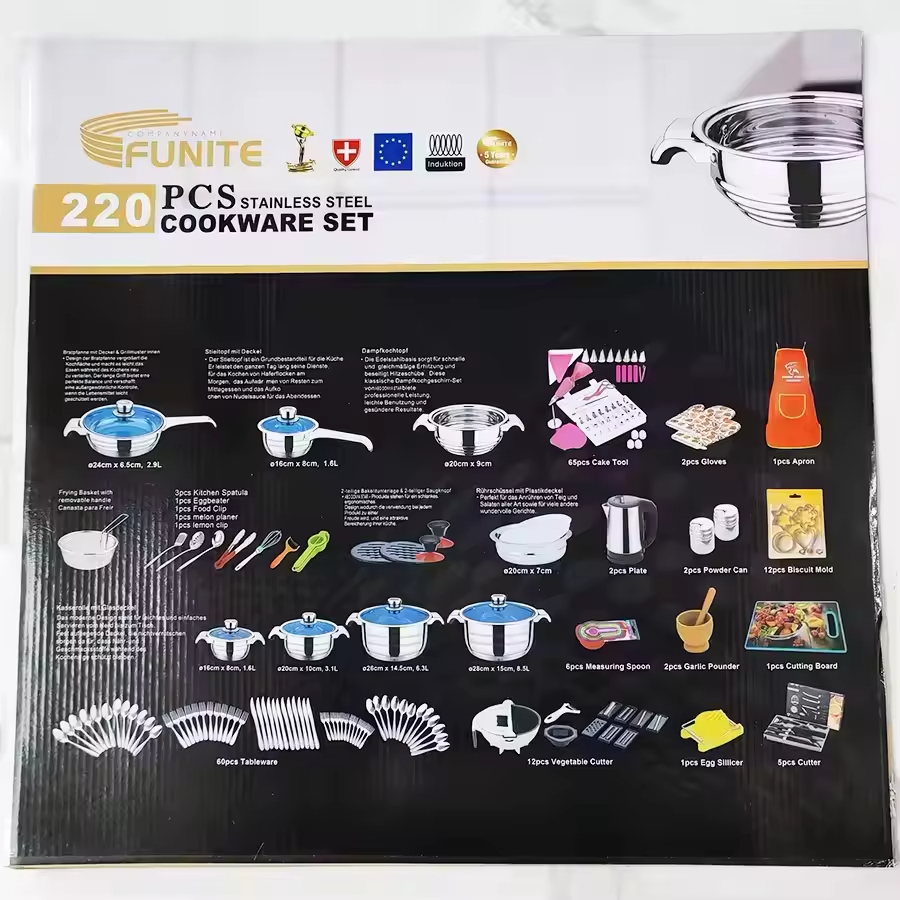 DETAILS: 220pcs stainless steel cookware set
