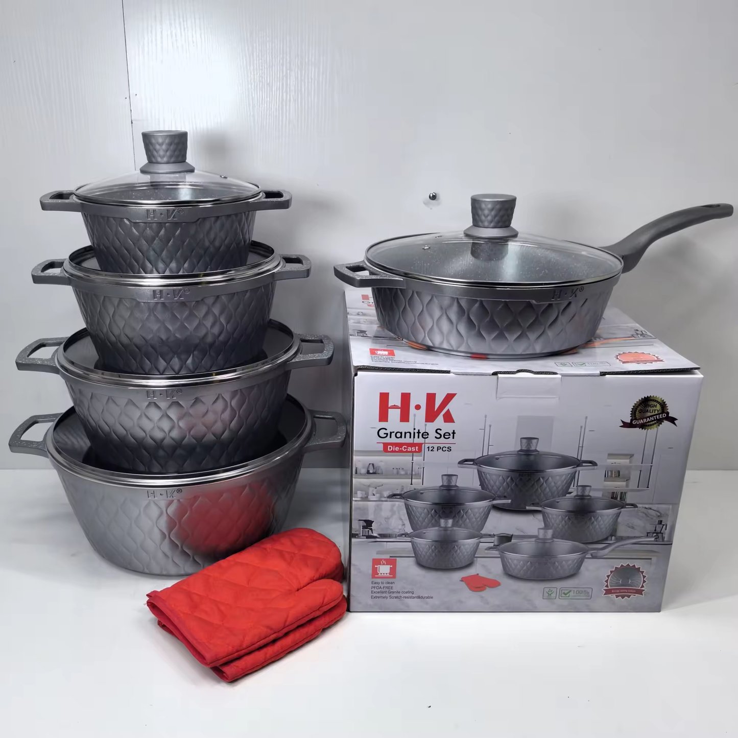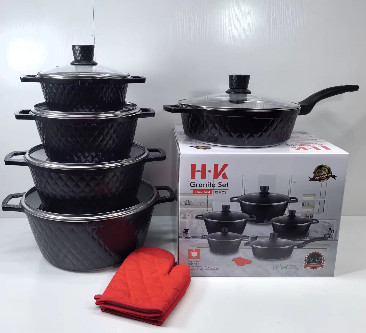 Upgrade your kitchen with our Cast Aluminum Marble Nonstick Cookware Set, designed for durability and superior heat distribution. Featuring a premium marble coating, it ensures effortless food release and easy cleanup without sticking. Perfect for all stovetops, including induction, this set offers scratch-resistant, PTFE and PFOA-free surfaces for healthier cooking. Lightweight yet sturdy, it combines style and functionality, making every meal preparation quick and enjoyable.