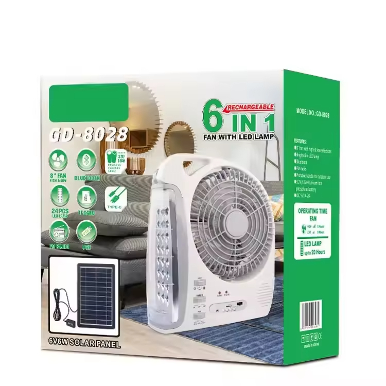 7. Fan configuration: Type-C charging cable, 6V 6W solar panel