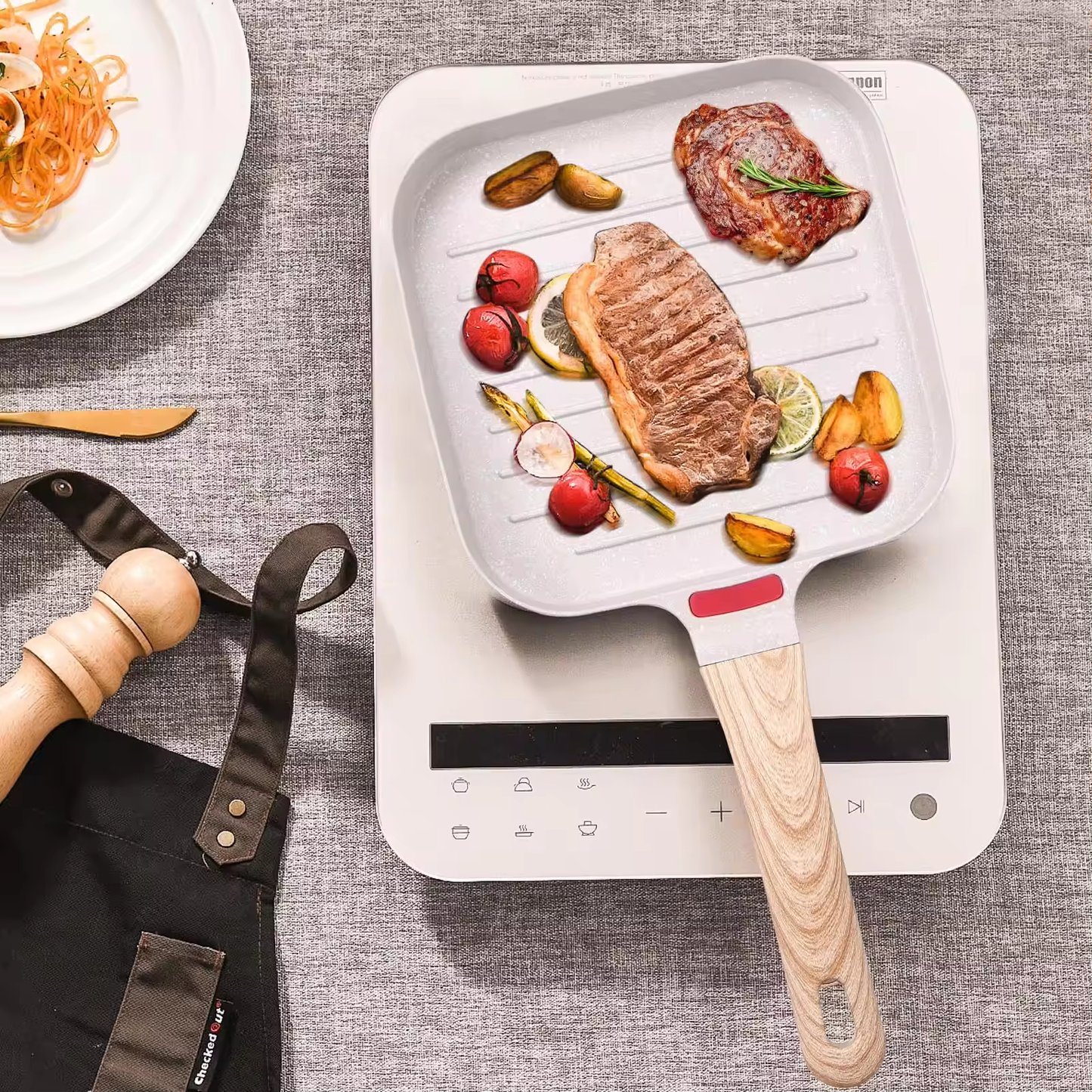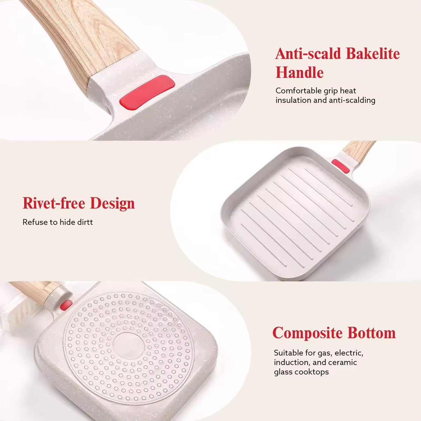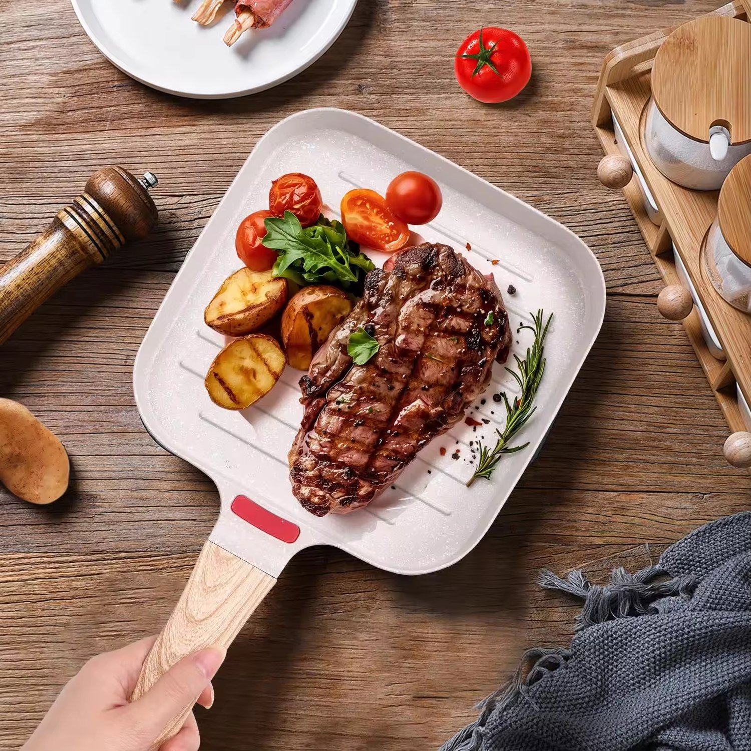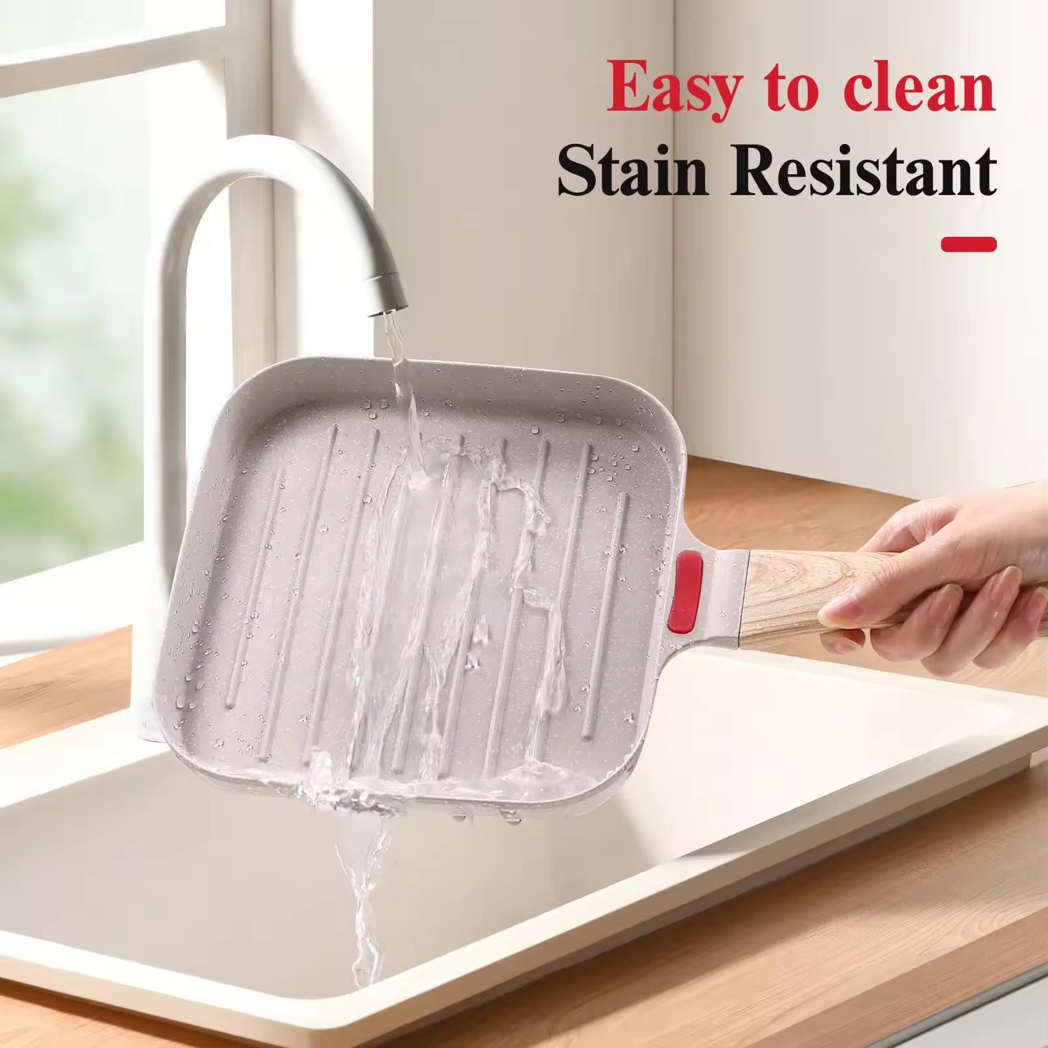 Introducing our Square Grill Pan Nonstick 19cm, perfect for making delicious sandwiches and more! With its nonstick coating, cooking and cleaning up is a breeze. The square shape allows for even cooking and the raised ridges give you those perfect grill marks. Its compact size makes it convenient for small kitchens or outdoor grilling. Say goodbye to soggy sandwiches and hello to crispy perfection with our Square Grill Pan!