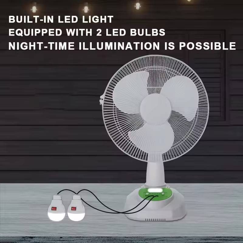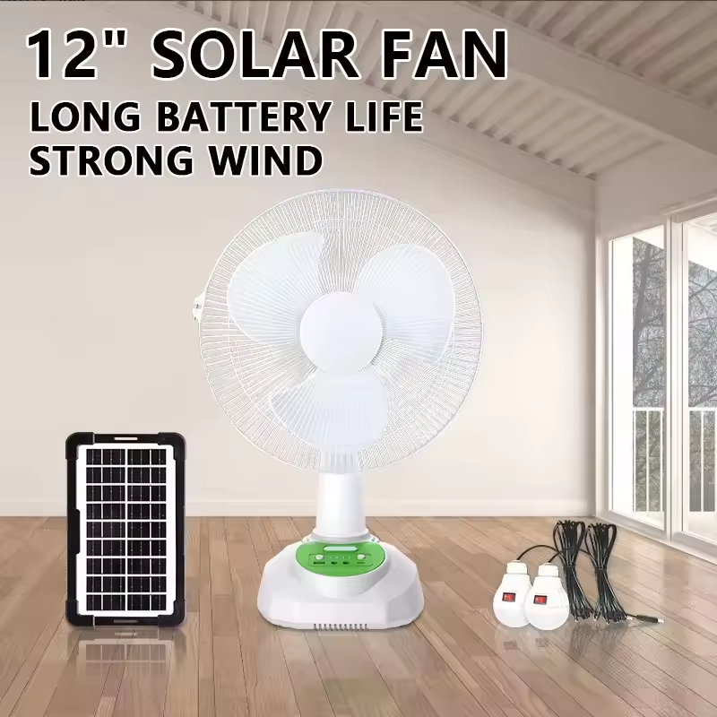 6. Fan configuration: Type-C charging cable, 6V 3W solar panel, 2 LED bulbs